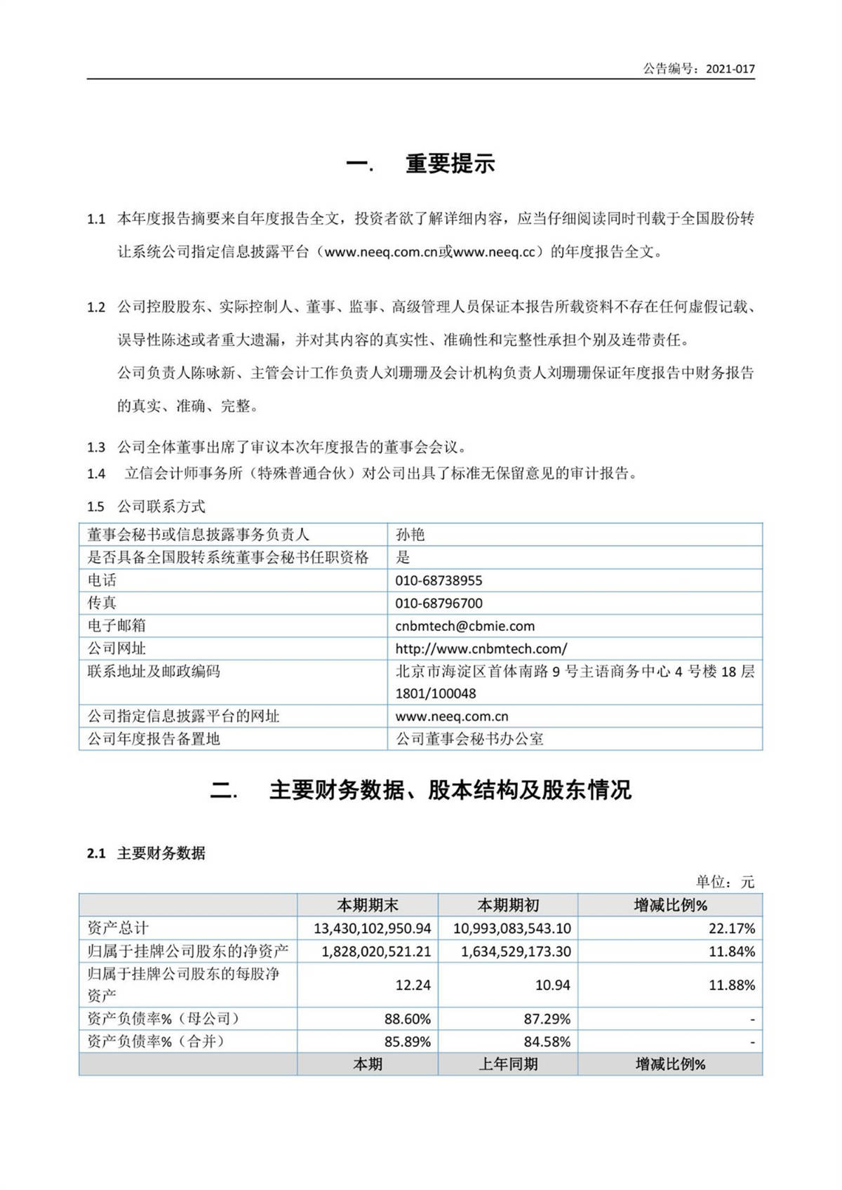 中建信息2020年年度報(bào)告摘要