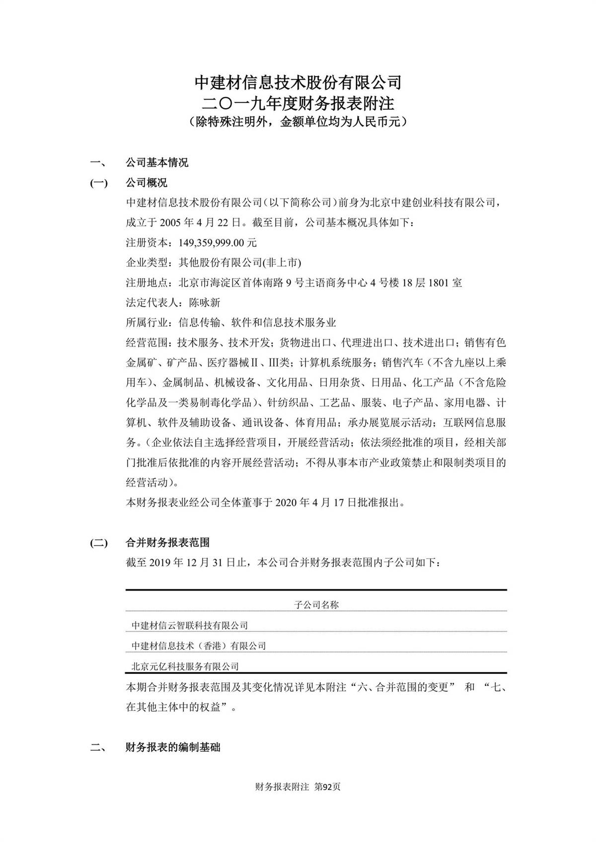 中建信息2019年年度報告