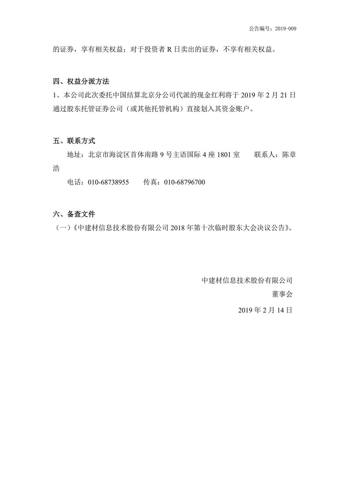 中建信息2018年第三季度權(quán)益分派實施公告