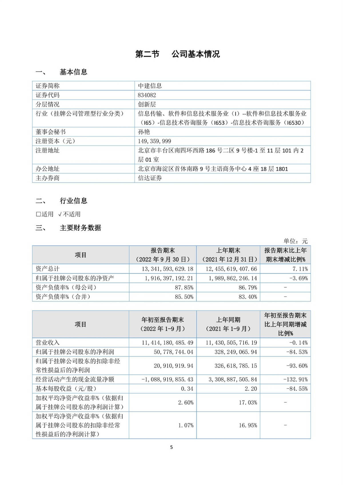 中建信息2022年第三季度報(bào)告