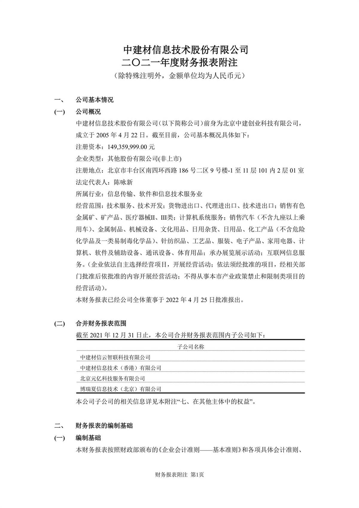 中建信息2021年年度報告