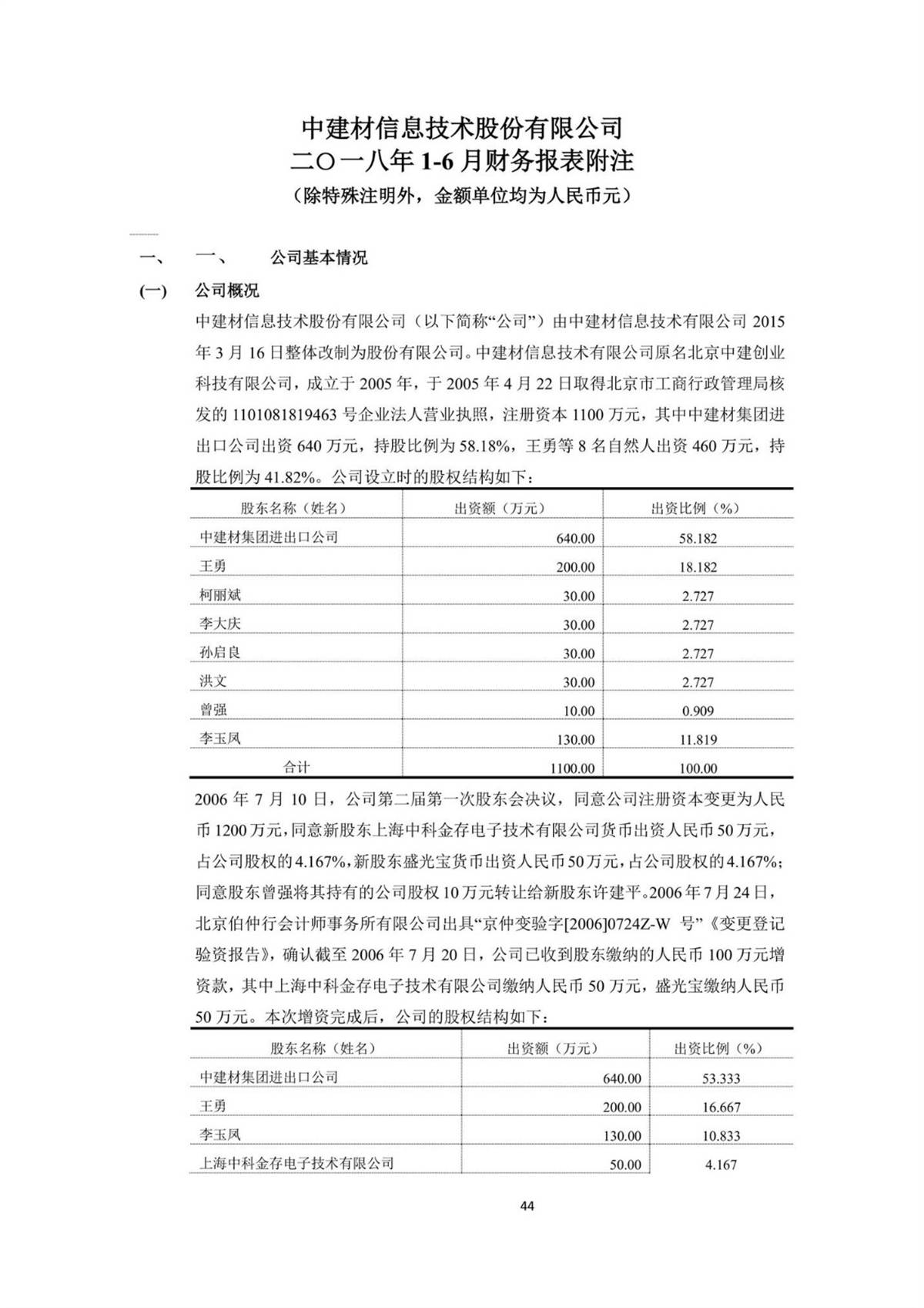 中建信息2018年半年度報(bào)告
